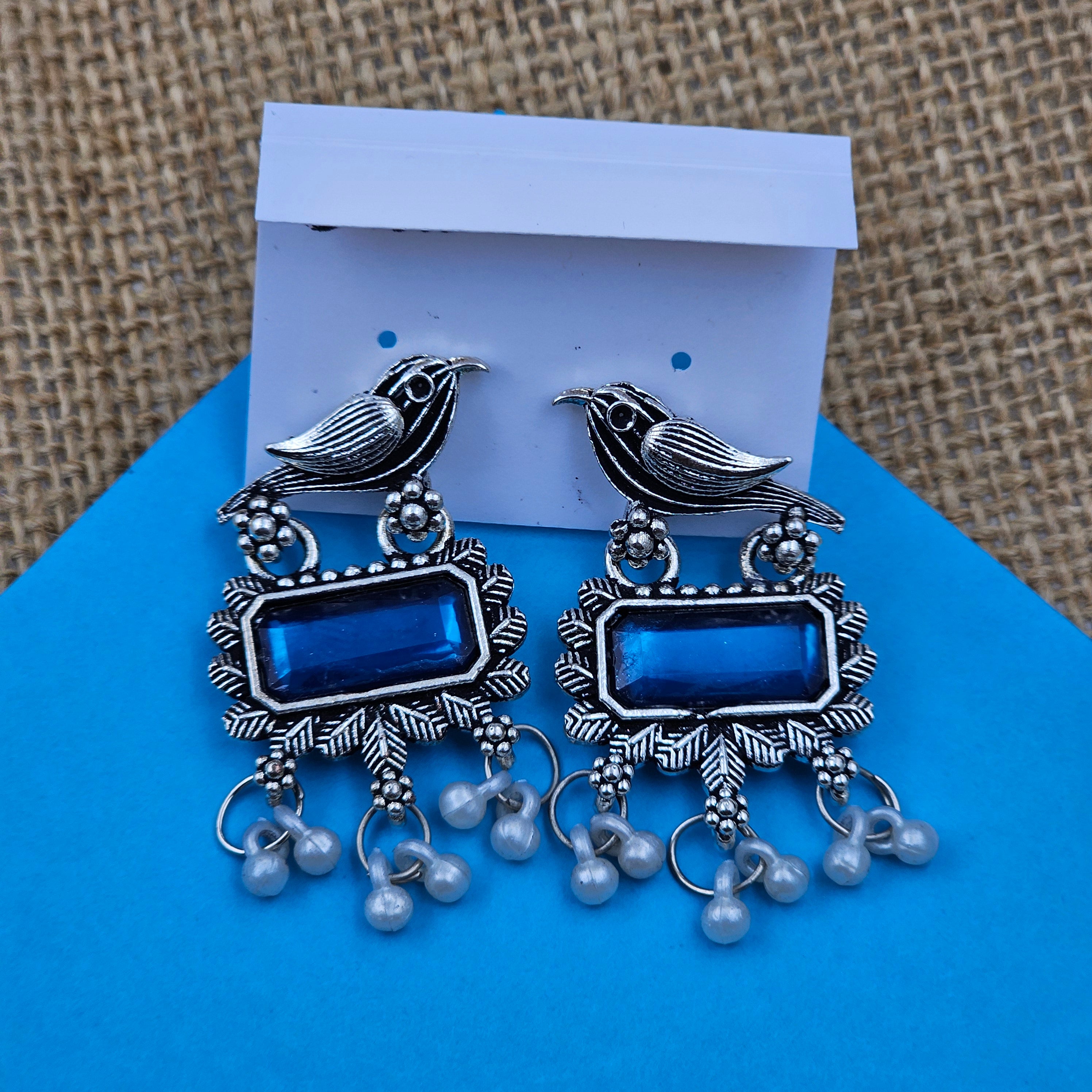 Deep Blue Oxidized Silver Statement Rectangle Earrings