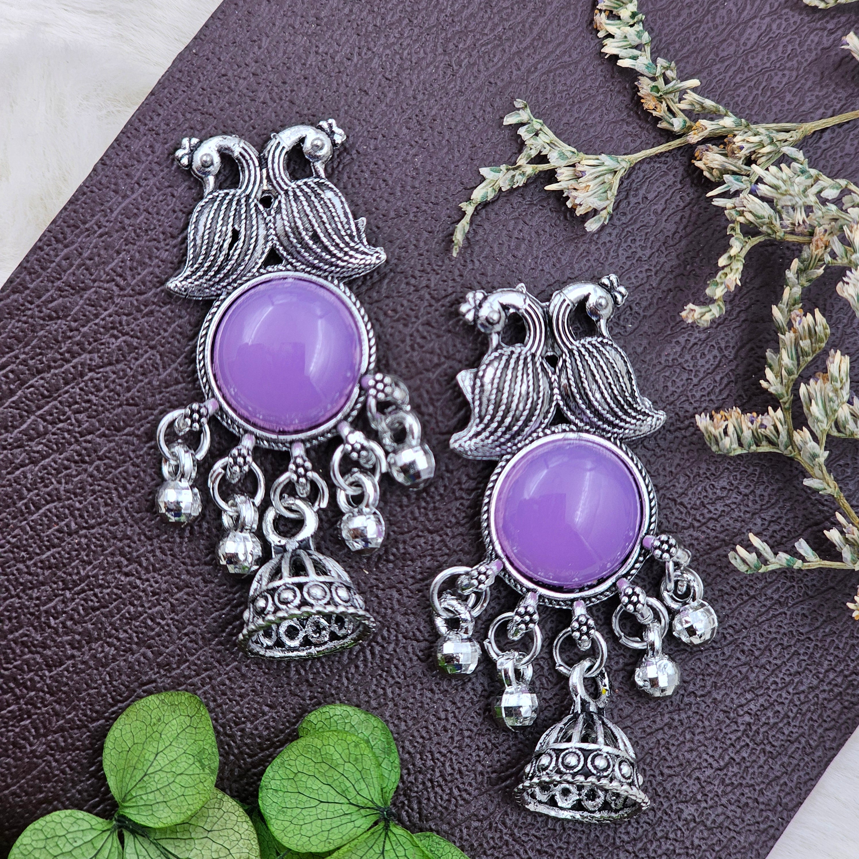Elegant Silver Jhumki With Purple Stone Drop Earrings