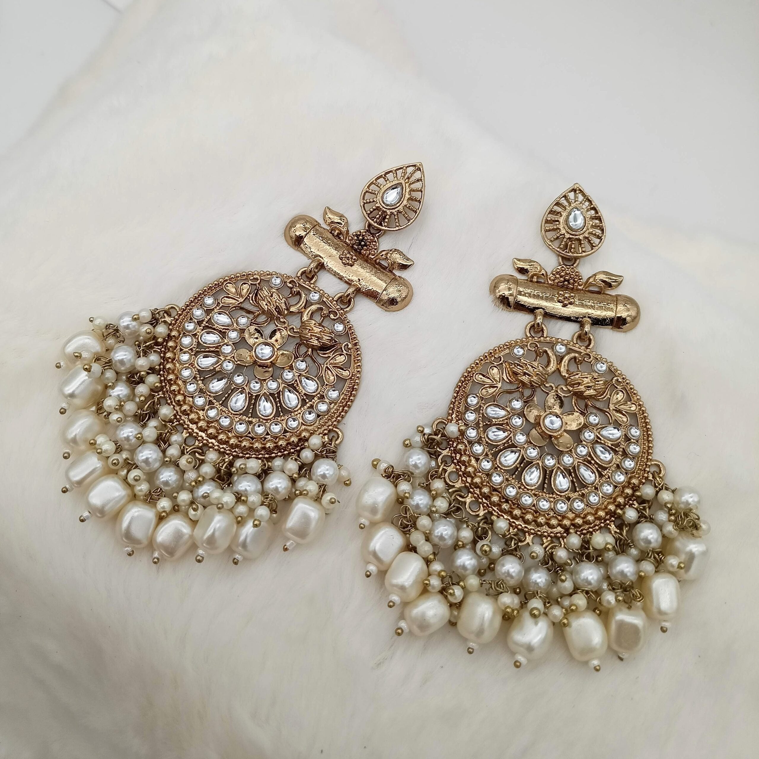 Golden Oxidised Gorgeous Big White Beads Earrings