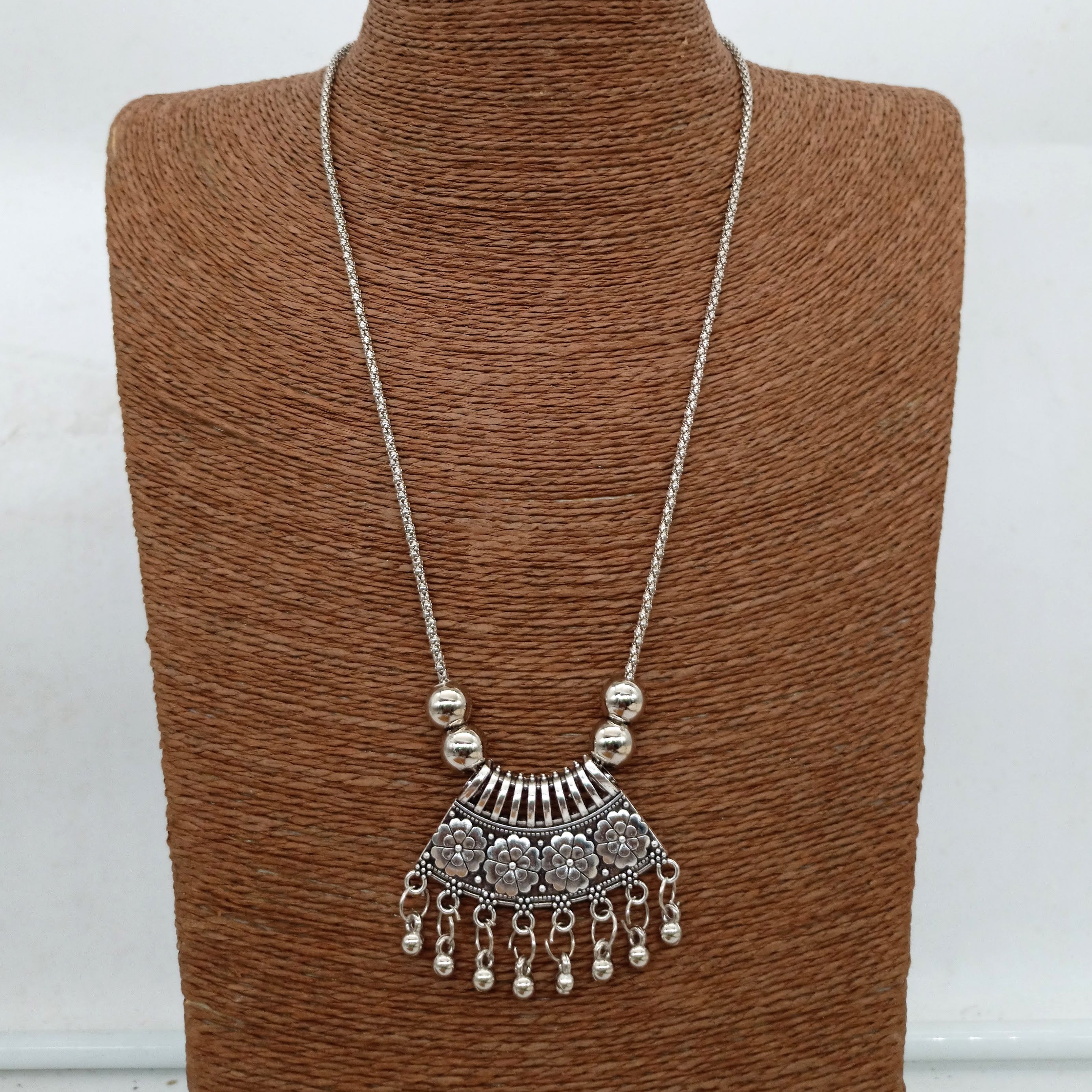 Gorgeous Flower Design Silver Oxidised Pendant Necklace