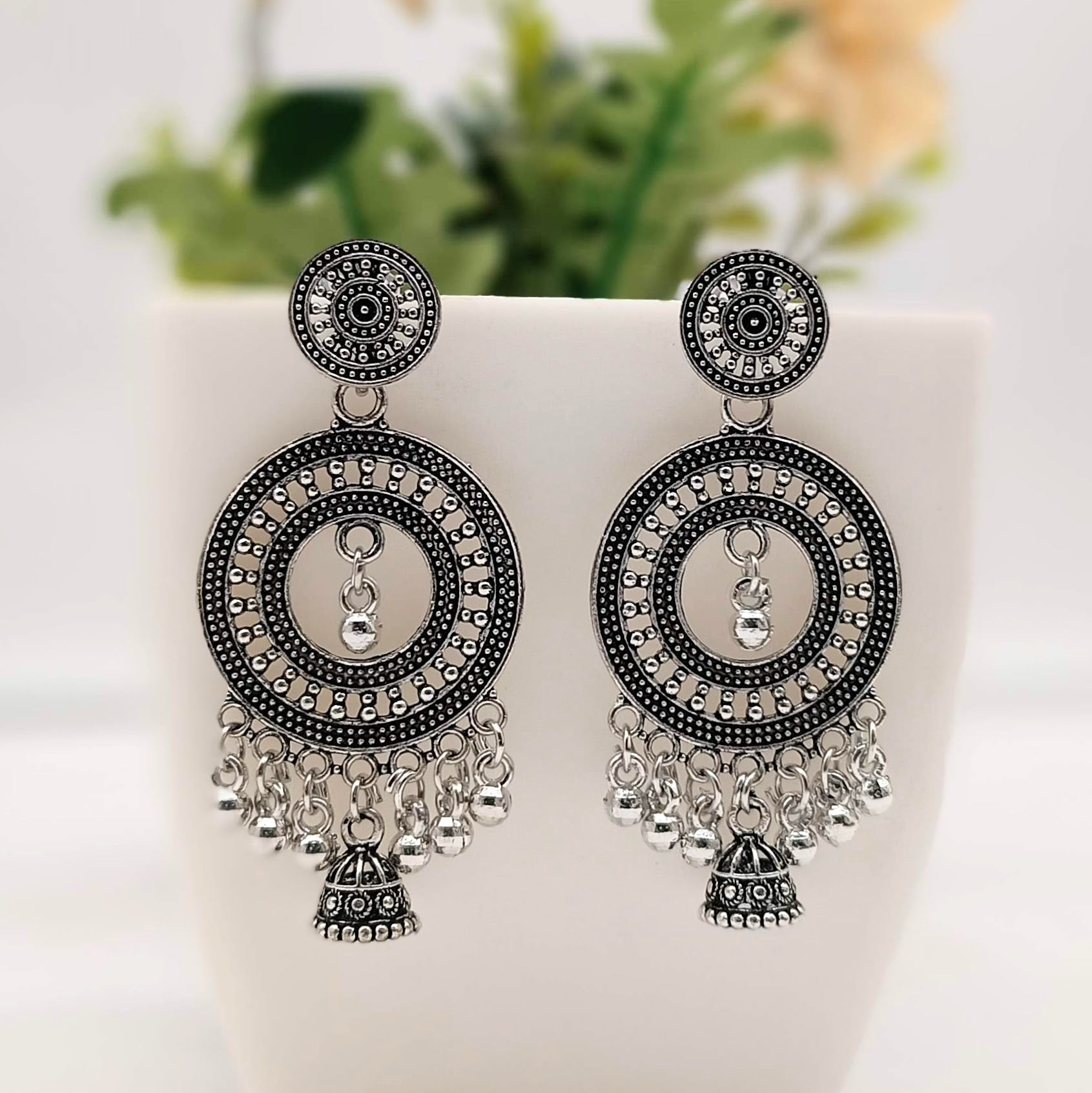Gorgeous Round Shape Drop Jhumka Silver Classic Oxidised Earrings