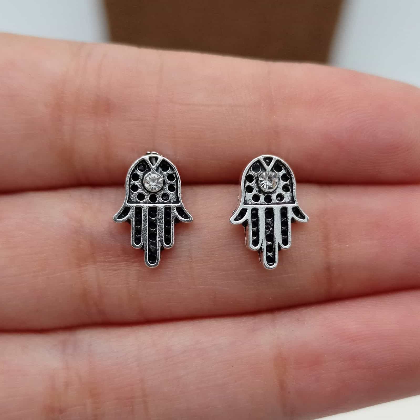 Itsy Bitsy Hand Shape Silver Oxidised Studs Earrings