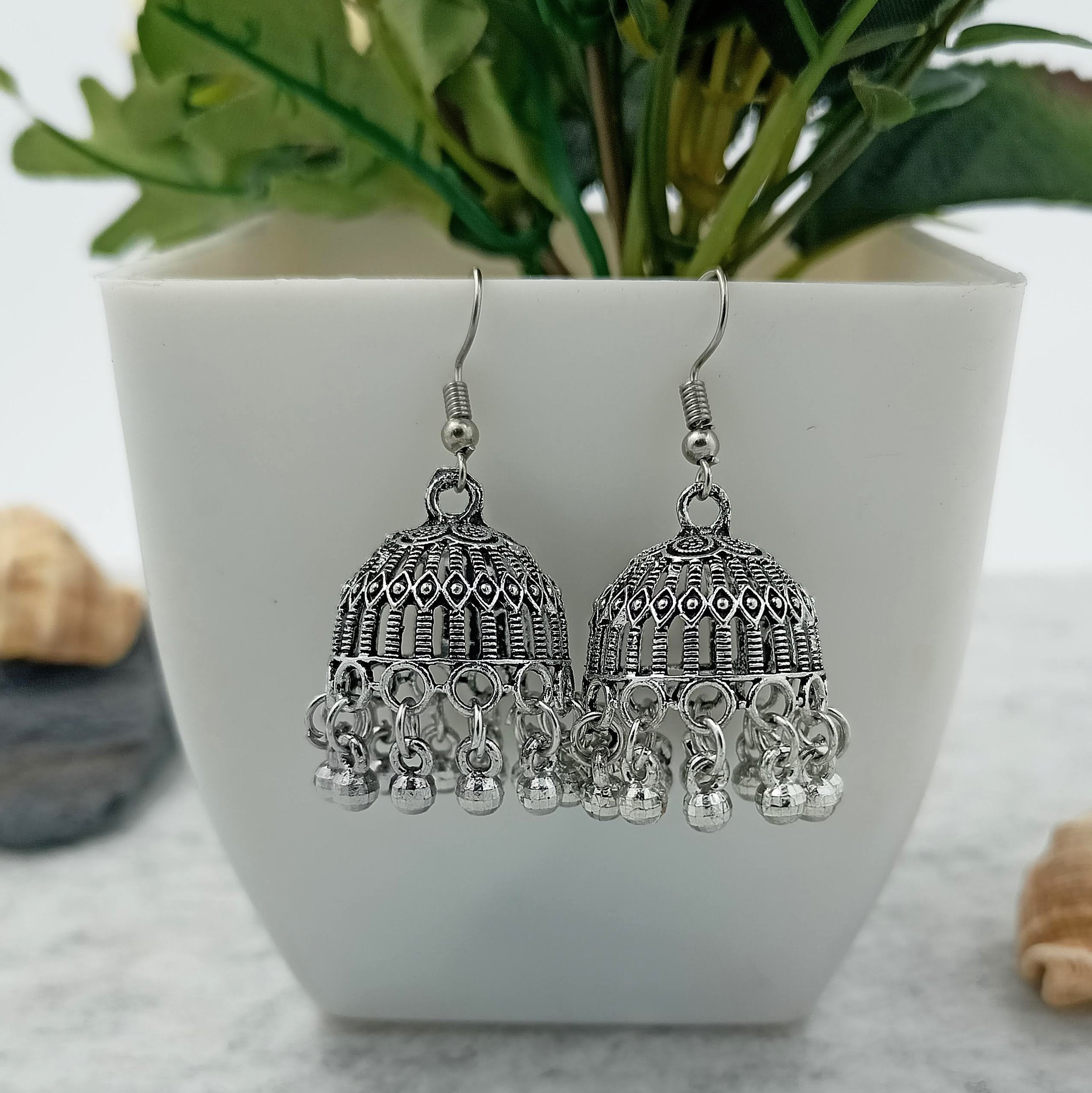 Jhumka Beautiful Designed Silver Beads Oxidised Earrings