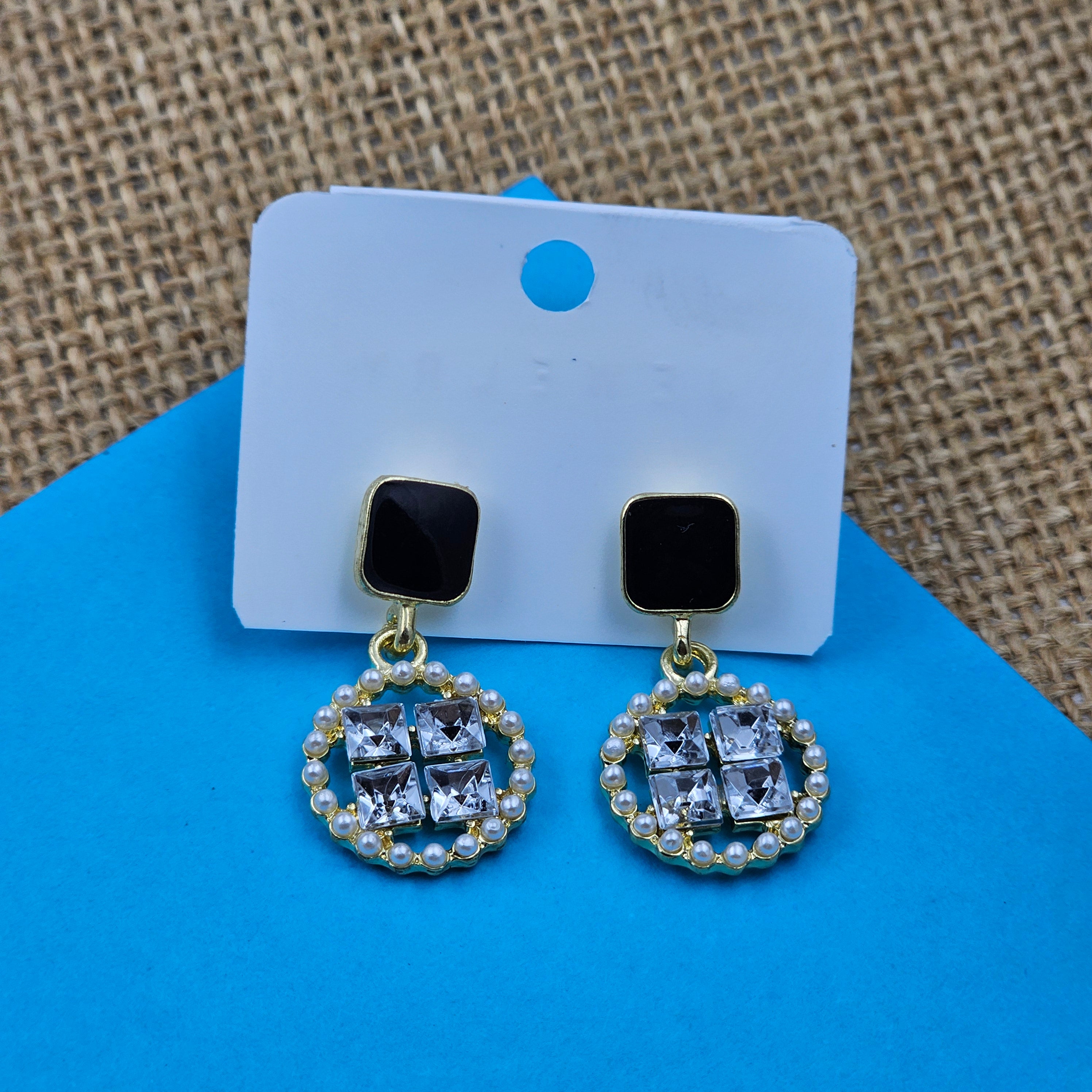 Korean Black Stone Drop Golden Stone Earrings
