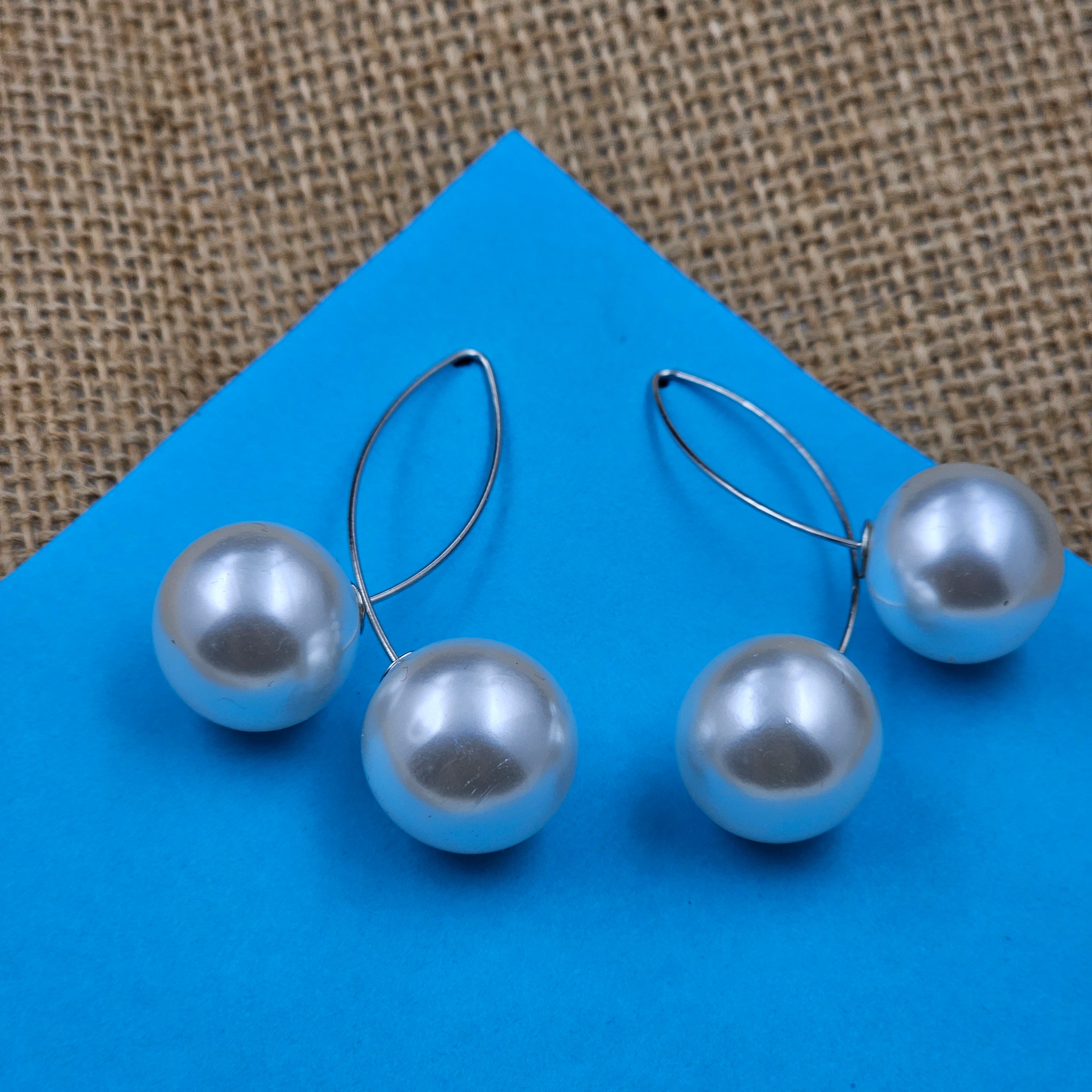 Large White Pearl Fashion Silver Earrings
