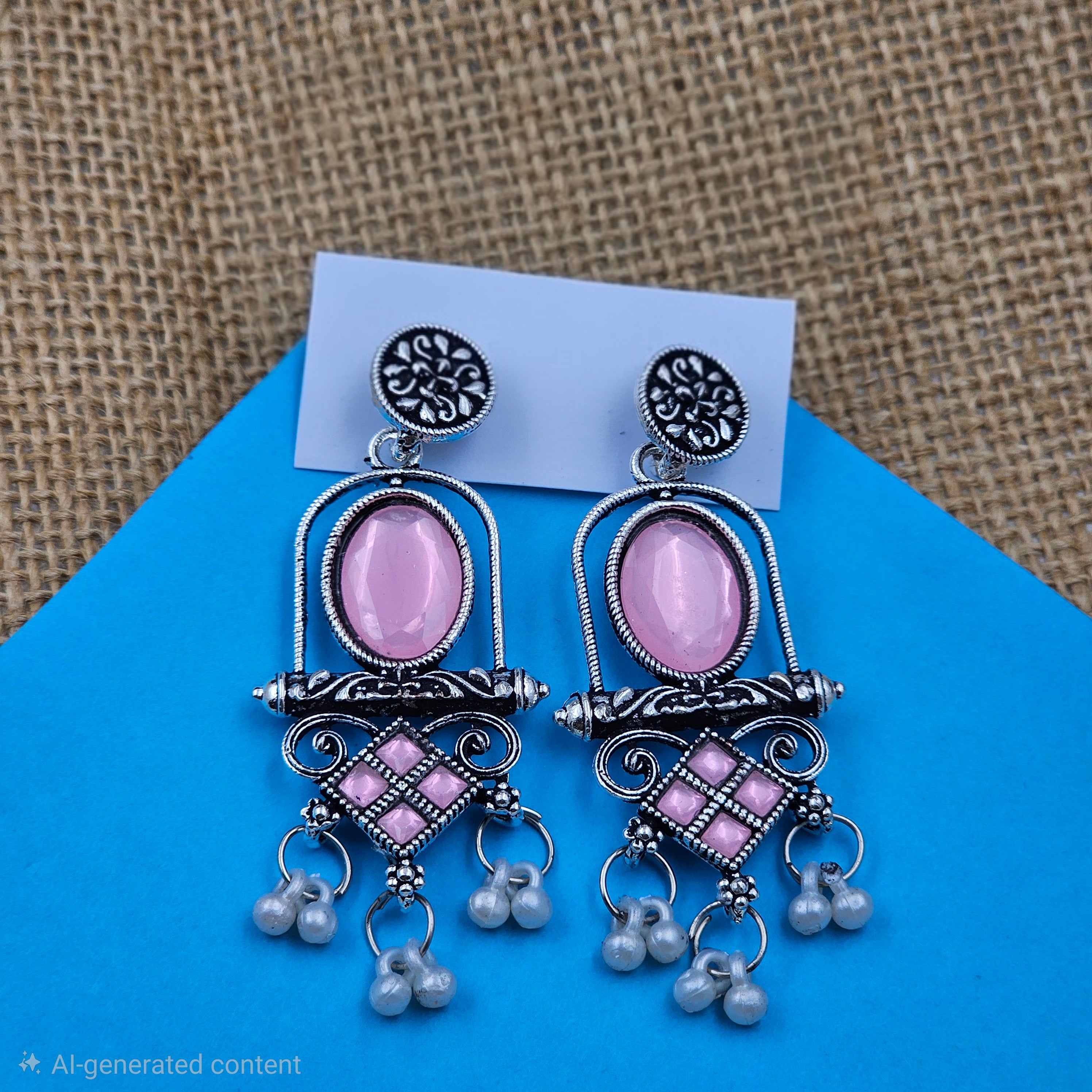 Light Pink Oxidized Stone Studded Dangler Earrings