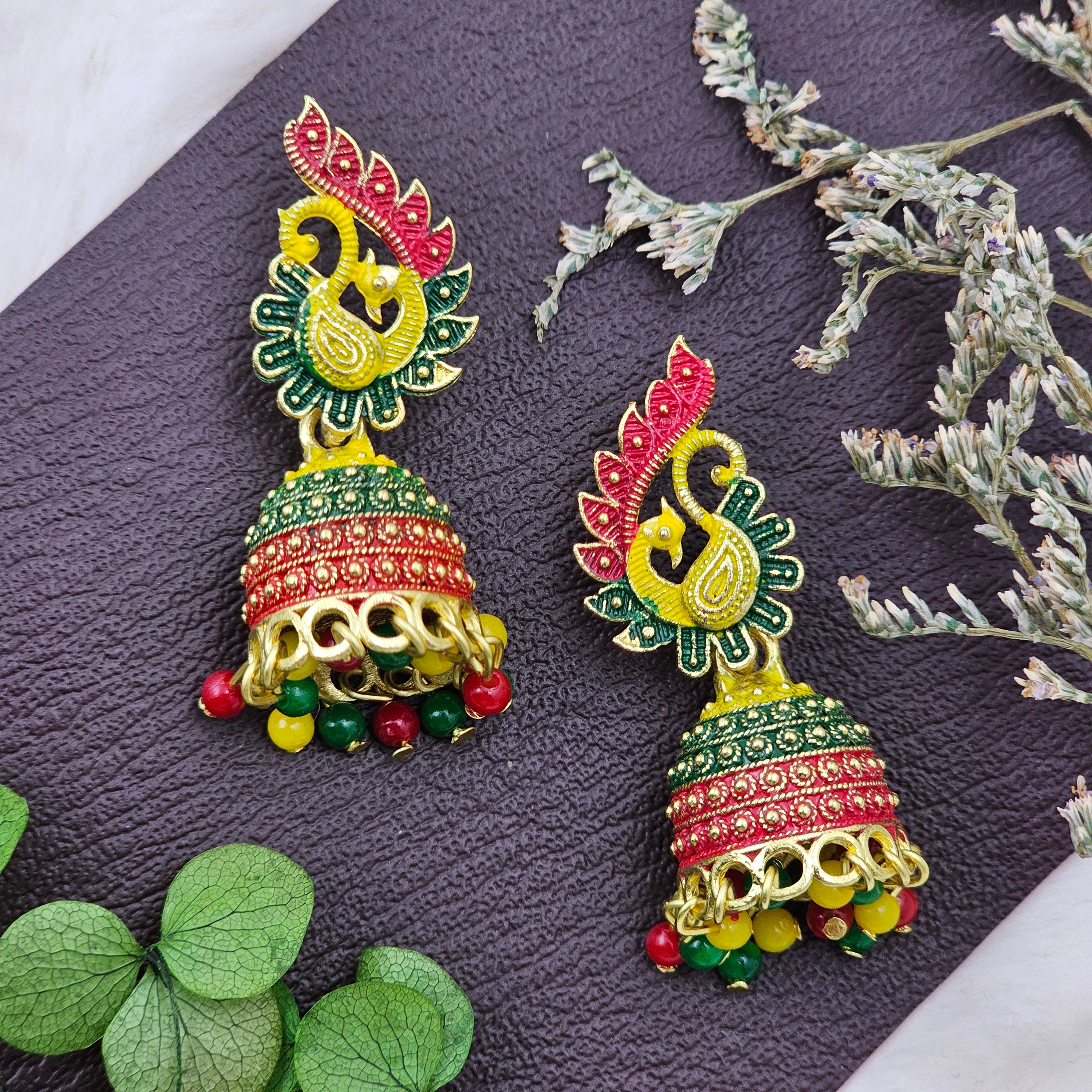 Peacock Design Traditional Multicolor Jhumki Drop Earrings