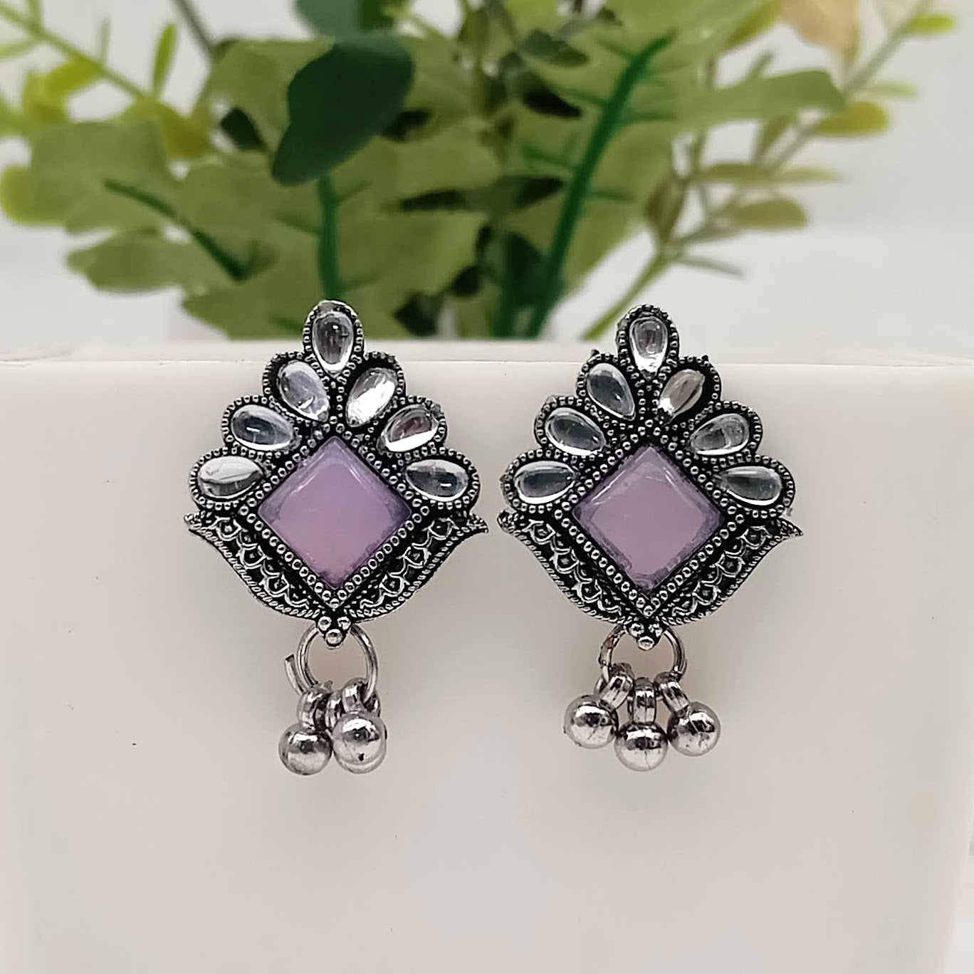Purple Color Stone Studded Antique Silver Oxidised Earrings