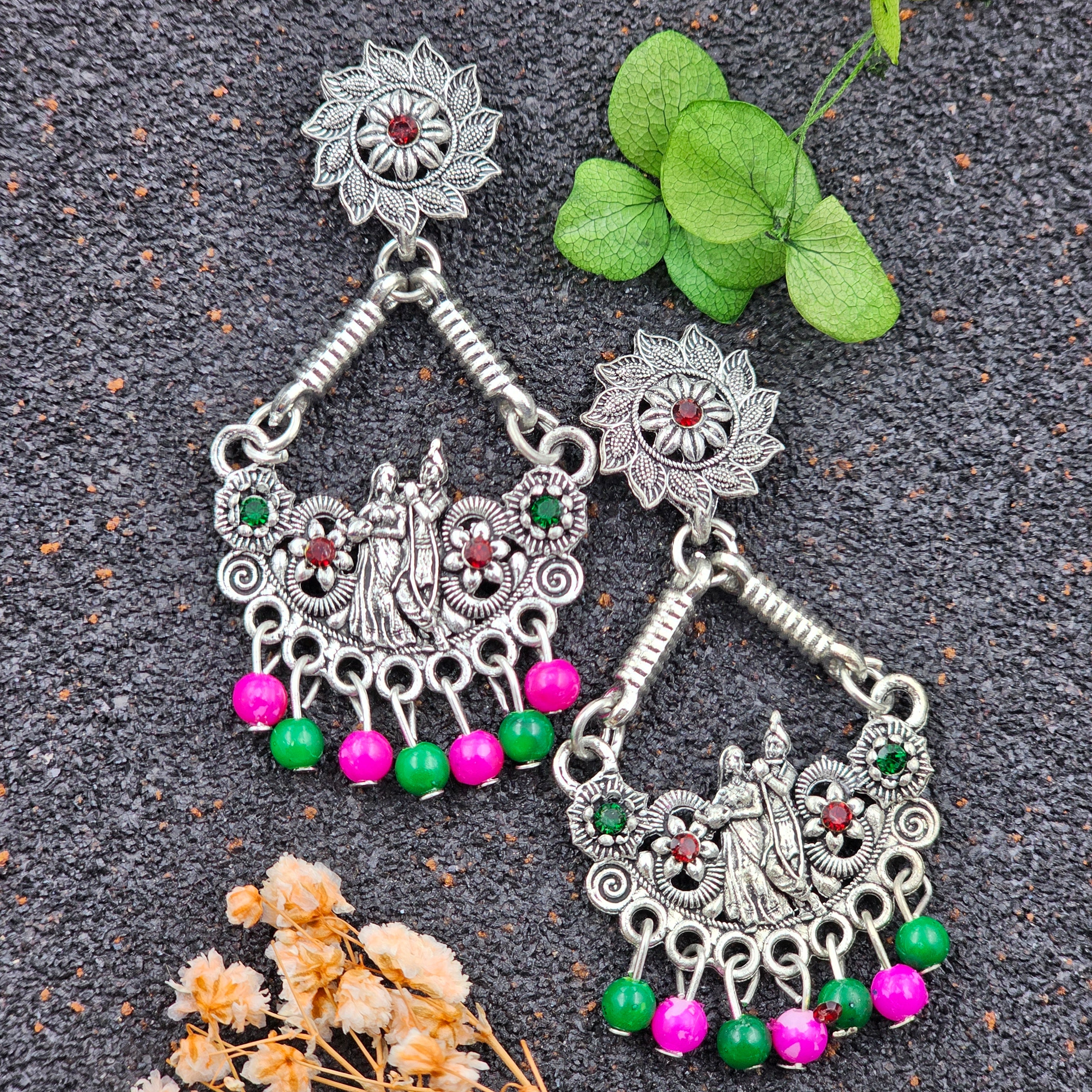 Radha Krishna Chaandbali Shape Multicolour Beads Drop Earrings
