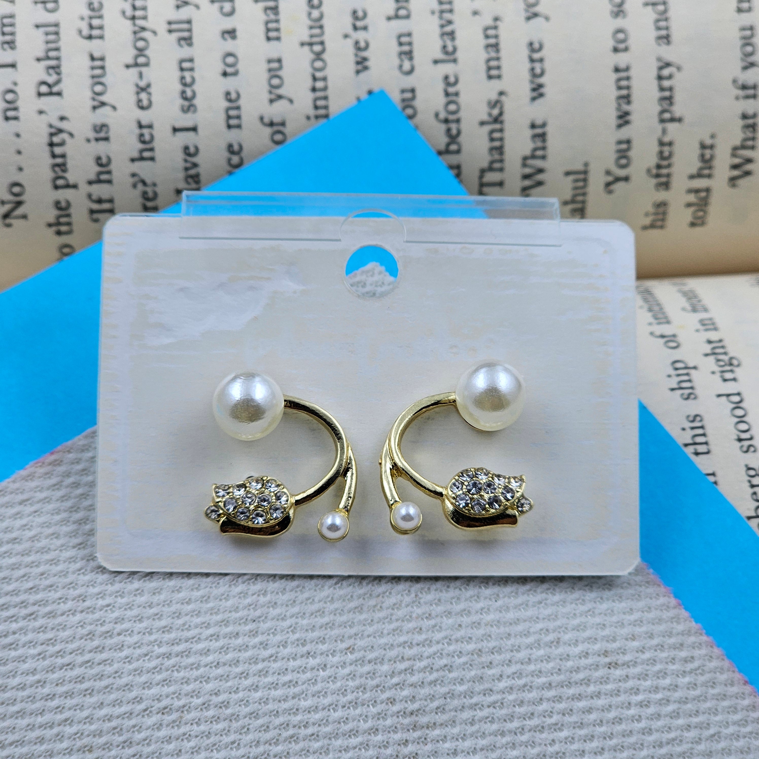 Rose Shape Pearl Studded Golden Daily Wear Earrings