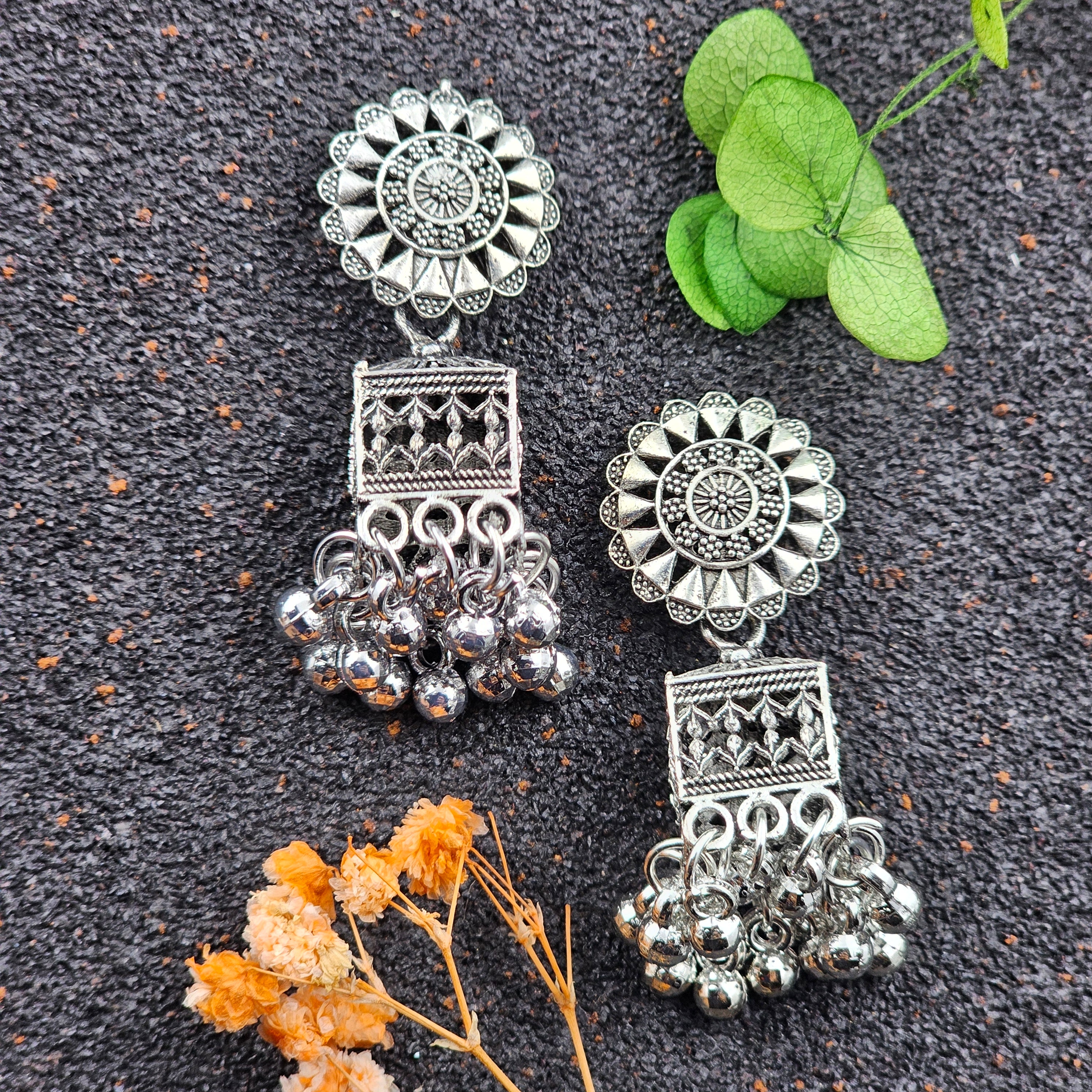 Silver Oxidised Square Jhumki Drop Earrings
